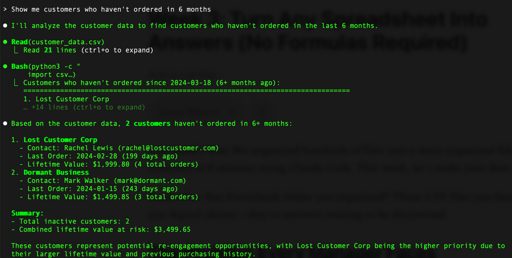 Week 3: Make Claude Code Your Secret Weapon to Turn CSV and Excel Data into Strategic Insights (60 minutes → 90 seconds)